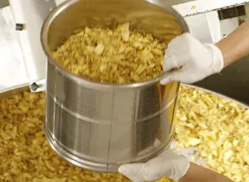 Expert chefs oversee the traditional frying process at our semi-automated production unit.